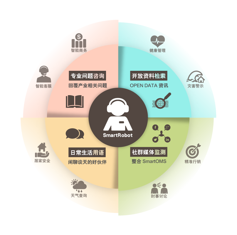 智网达资讯最新研发SmartRobot智能机器人协助企业建立各种自主智能服务平台,达到快速解决问题、24小时服务的完美体验。